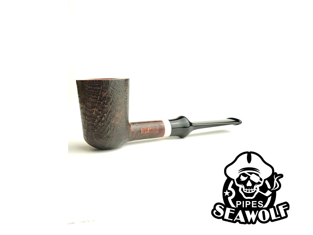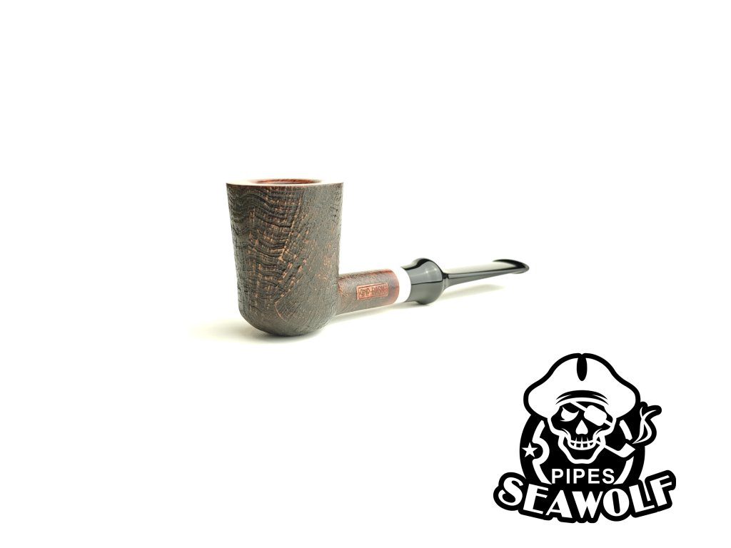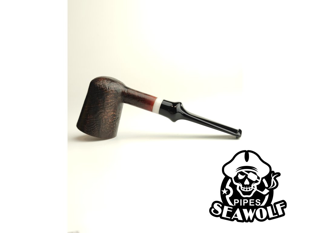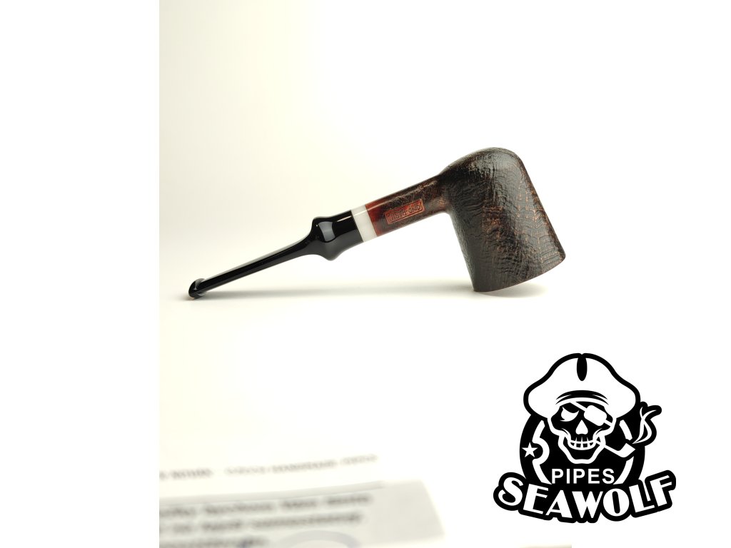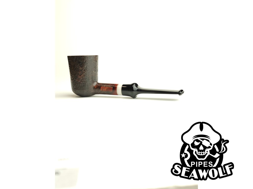 Elegantní verze, klasický tvar s tenkým krčkem, jemně pískovaná dýmka s hladkým vrškem hlavičky. Dekorace krčku bílý akryl. Dýmka je bezfiltrová.